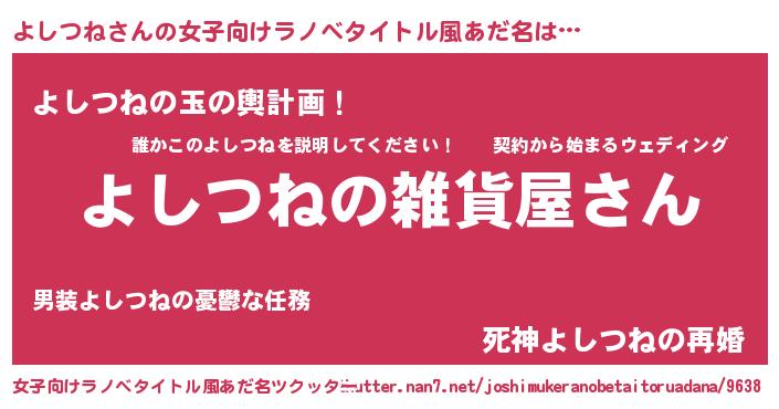 | 男性向けラノベタイトル風あだ名 | 『やはりよしつねの青春ラブコメはまちがっている 』 |