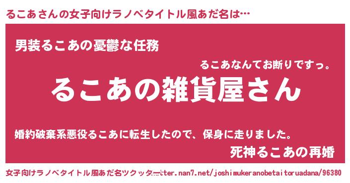 | 男性向けラノベタイトル風あだ名 | 『やはりるこあの青春ラブコメはまちがっている 』 |