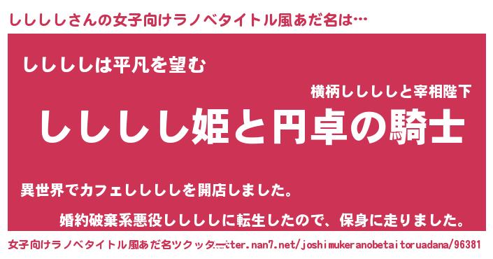 | 男性向けラノベタイトル風あだ名 | 『ししししの憂鬱』 |