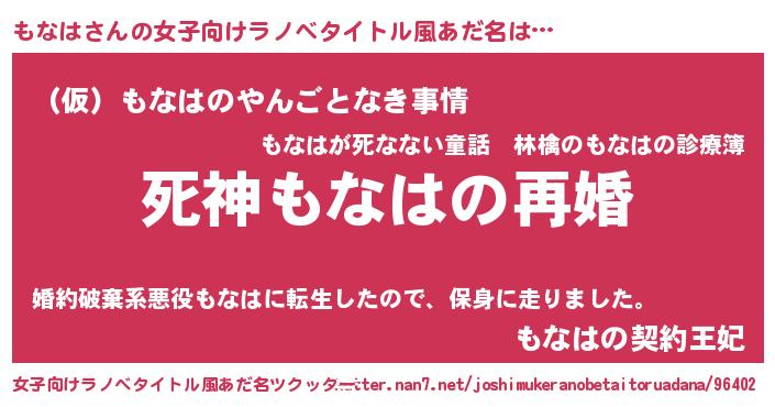 | 肩書あだ名 | 『もなは助教授』『もなは店長』 |