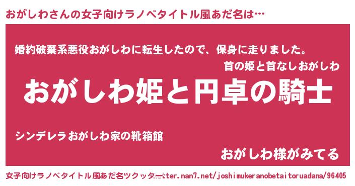 | 胡散臭い通販商品みたいなあだ名 | 『モテモテ間違いなしブレスレット…その名も「おがしわ」』 |