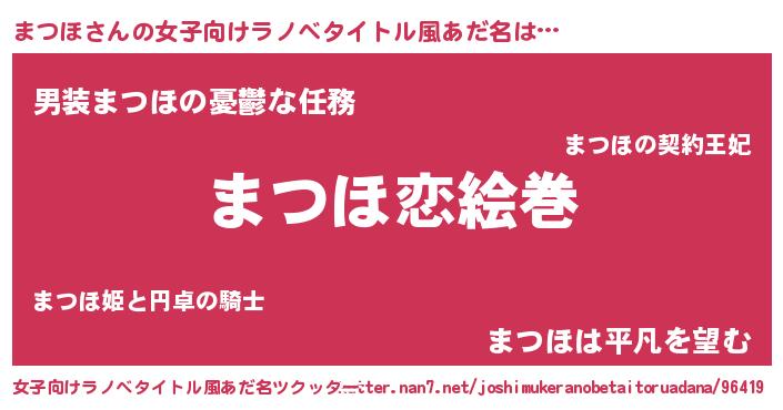 | 男性向けラノベタイトル風あだ名 | 『ノーゲーム・ノーマツホ』 |