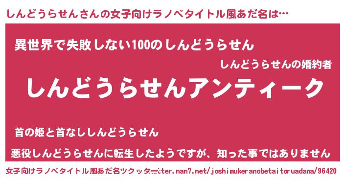 | 男性向けラノベタイトル風あだ名 | 『魔法科高校のしんどうらせん』 |