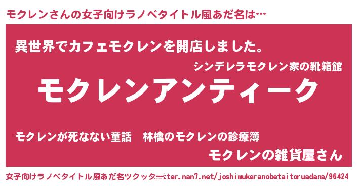 | 自動車の名前っぽいあだ名 | 『レクモス』『ヴィッモ』『モクア』 |