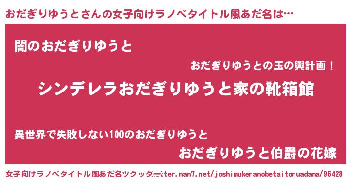 | 胡散臭い通販商品みたいなあだ名 | 『ガンによく効く高麗人参…その名も「おだぎりゆうと」』 |