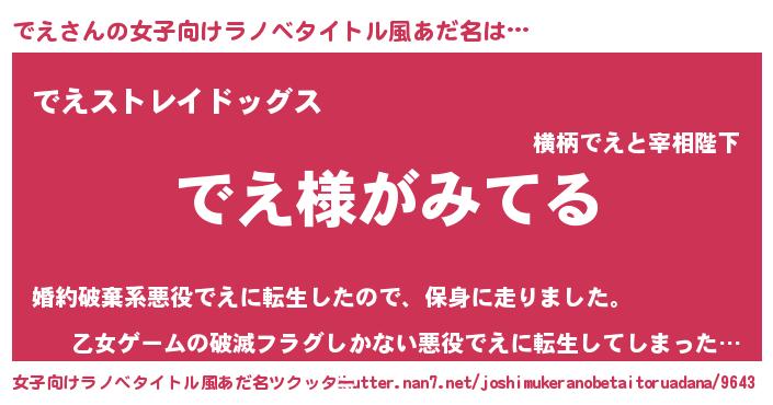 | 男性向けラノベタイトル風あだ名 | 『でえの嫁は女の子じゃないと思った?』 |