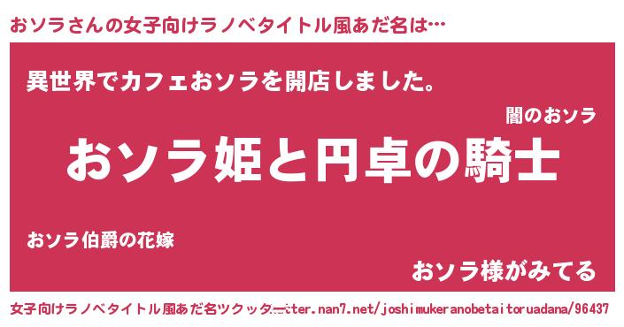 | ヘコむあだ名 | 『おソふぇ~』『おソラ(苦笑)』 |