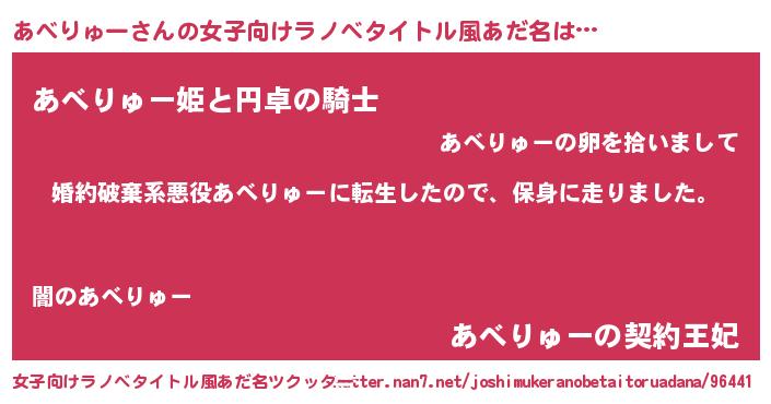 | 男性向けラノベタイトル風あだ名 | 『転生したらあべりゅーだった件』 |
