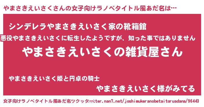| 男性向けラノベタイトル風あだ名 | 『やはりやまさきえいさくの青春ラブコメはまちがっている 』 |
