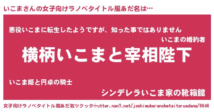 | 胡散臭い通販商品みたいなあだ名 | 『あなたにだけ特別に提供する100年もののヴィンテージワイン…その名も「いこま」』 |