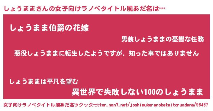 | 意味不明あだ名 | 『住所不定無職しょうまま(68歳)』 |