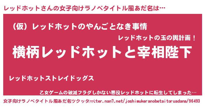 | 男性向けラノベタイトル風あだ名 | 『レッドホットに滅ぼされるだけの簡単なお仕事です』 |