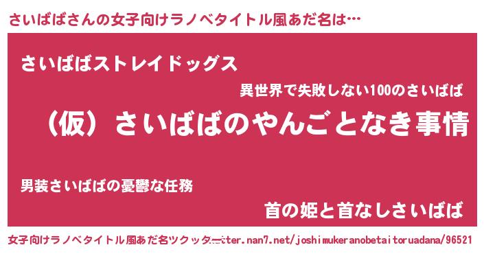 | 男性向けラノベタイトル風あだ名 | 『さいばばの憂鬱』 |