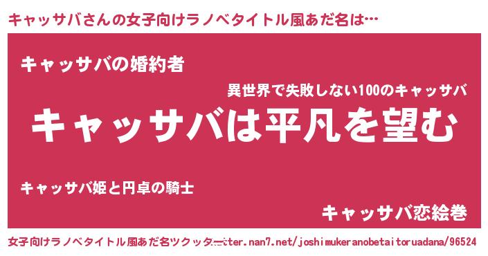 | ヒーロー風カッコイイあだ名 | 『暗黒騎士キャ』『愛の使者キャッサバ』 |