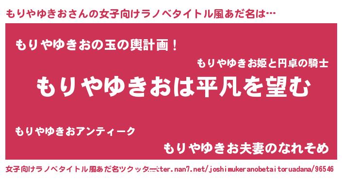 | 男性向けラノベタイトル風あだ名 | 『ダンジョンにもりやゆきおを求めるのは間違っているだろうか』 |