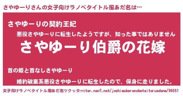 | ファンタジー風あだ名 | 『エターナルサヤユーリー』 |