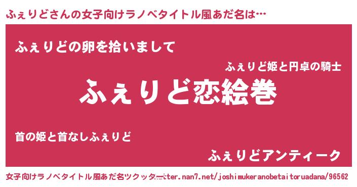 | 男性向けラノベタイトル風あだ名 | 『おまえをオタクにしてやるから、俺をふぇりどにしてくれ! 』 |