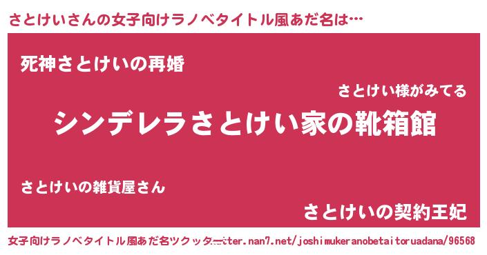 | ヒーロー風カッコイイあだ名 | 『愛の使者さとけい』『ネオサトケイ』 |