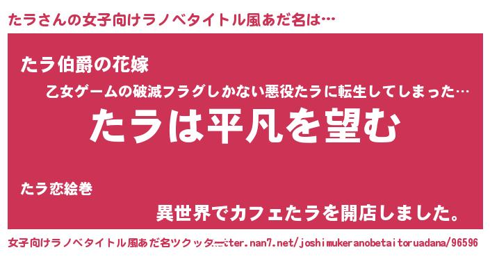 | 胡散臭い通販商品みたいなあだ名 | 『信頼と実績のネックレス…その名も「たラ」』 |