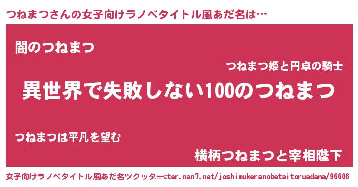 | 男性向けラノベタイトル風あだ名 | 『つねまつという概念が存在しない退屈な世界 』 |
