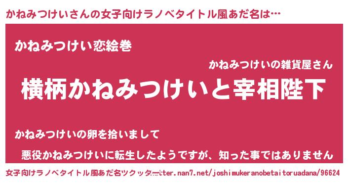 | 男性向けラノベタイトル風あだ名 | 『かねみつけいに滅ぼされるだけの簡単なお仕事です』 |