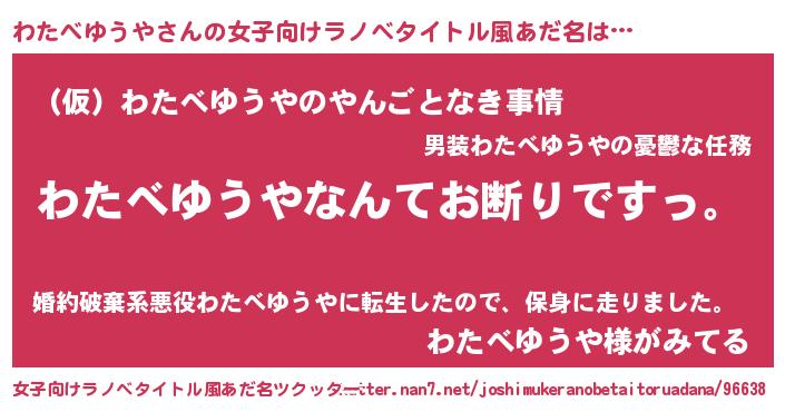 | 男性向けラノベタイトル風あだ名 | 『魔法科高校のわたべゆうや』 |