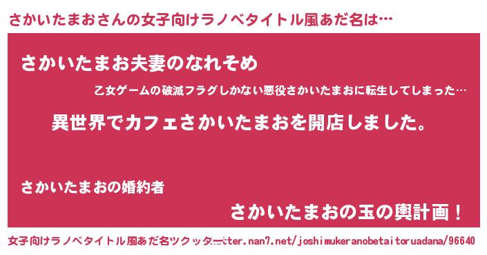 | 男性向けラノベタイトル風あだ名 | 『誰もが恐れるあのさかいたまおが、ぼくの専属メイドになるようです。』 |