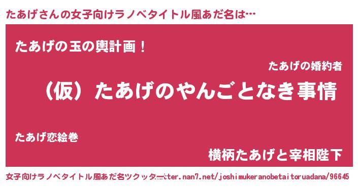 | 胡散臭い通販商品みたいなあだ名 | 『必ず成功するブレスレット…その名も「たあげ」』 |
