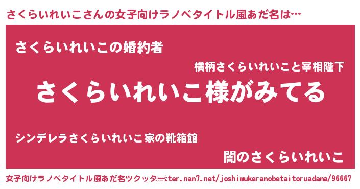 | 伝説のあだ名 | 『覚醒した魔法使いさくらいれいこ』 |