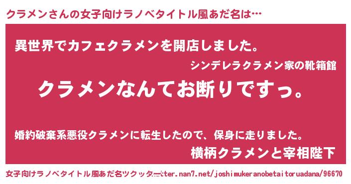 | 意味不明あだ名 | 『自称クラメン』『永久保存クラメン』 |