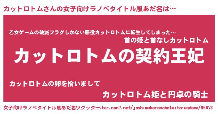 | 胡散臭い通販商品みたいなあだ名 | 『来世でも幸せになれる水素水…その名も「カットロトム」』 |