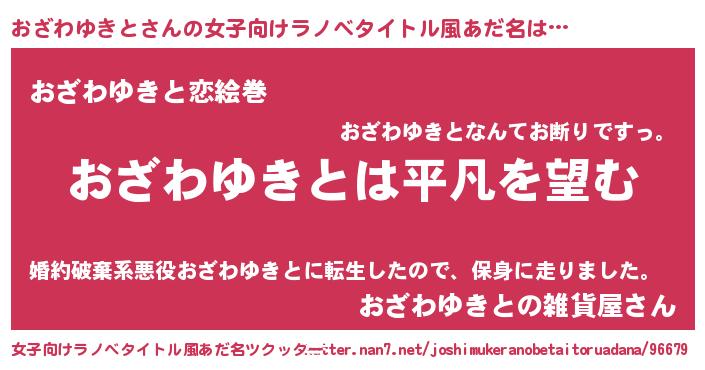 | 男性向けラノベタイトル風あだ名 | 『ダンジョンにおざわゆきとを求めるのは間違っているだろうか』 |