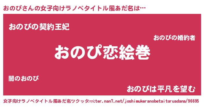 | 男性向けラノベタイトル風あだ名 | 『ノーゲーム・ノーオノピ』 |