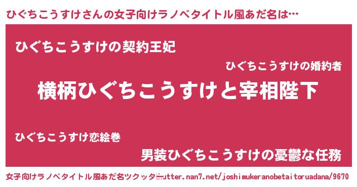 | 男性向けラノベタイトル風あだ名 | 『ひぐちこうすけに滅ぼされるだけの簡単なお仕事です』 |