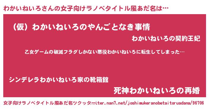 | 肩書あだ名 | 『わかいねいろ教官』『わかいねいろCEO』 |