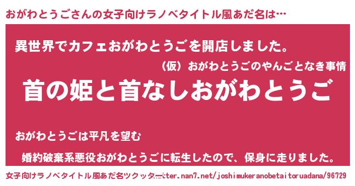 | 男性向けラノベタイトル風あだ名 | 『はたらくおがわとうごさま!』 |