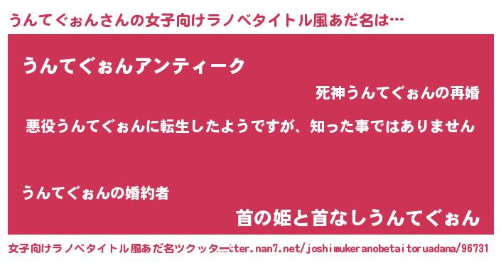 | 胡散臭い通販商品みたいなあだ名 | 『あなたにだけ特別に提供する100年もののヴィンテージワイン…その名も「うんてぐぉん」』 |