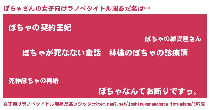| 男性向けラノベタイトル風あだ名 | 『魔弾の王とぼちゃ』 |