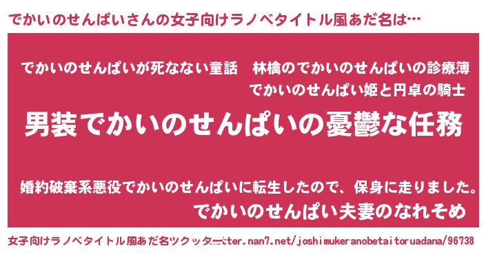 | 男性向けラノベタイトル風あだ名 | 『うちのでかいのせんぱいが世界を掌握している!』 |