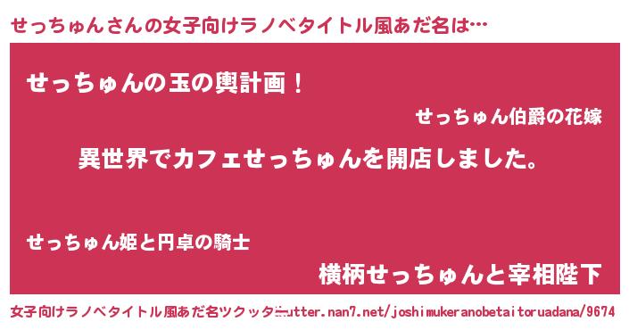 | 男性向けラノベタイトル風あだ名 | 『誰もが恐れるあのせっちゅんが、ぼくの専属メイドになるようです。』 |