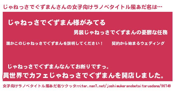 | 男性向けラノベタイトル風あだ名 | 『ジャネッサデグズマンアートオンライン』 |