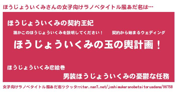 | 男性向けラノベタイトル風あだ名 | 『転生したらほうじょういくみだった件』 |