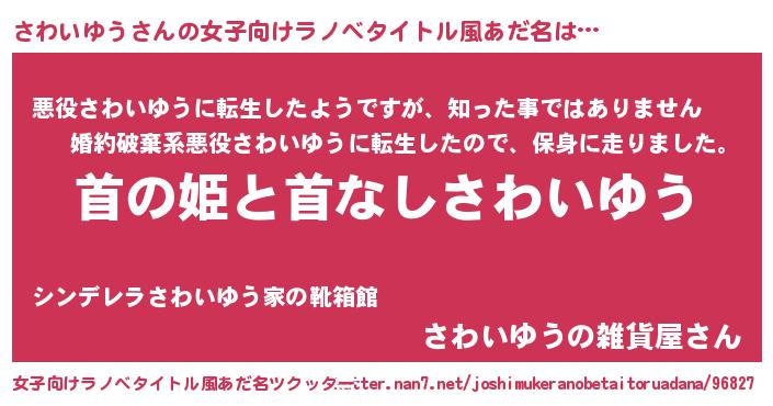 | 意味不明あだ名 | 『住所不定無職さわいゆう(86歳)』 |