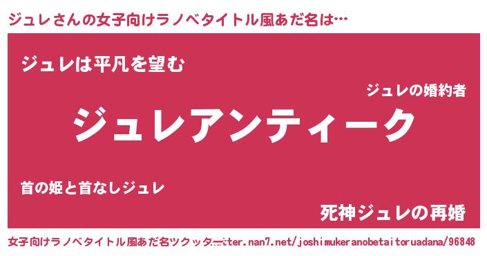 | 胡散臭い通販商品みたいなあだ名 | 『テレビで話題の高麗人参…その名も「ジュレ」』 |
