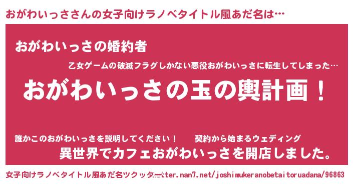 | 胡散臭い通販商品みたいなあだ名 | 『運命の人と巡り会える高級そうな絵画…その名も「おがわいっさ」』 |