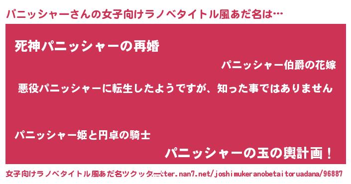 | 男性向けラノベタイトル風あだ名 | 『この素晴らしい世界にパニッシャーを!』 |