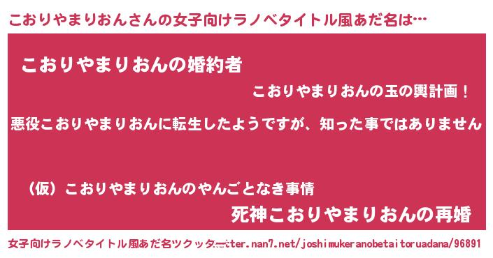 | 男性向けラノベタイトル風あだ名 | 『この素晴らしい世界にこおりやまりおんを!』 |