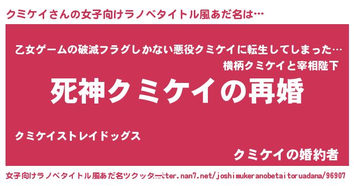 | 伝説のあだ名 | 『救世主となる錬金術士クミケイ』 |
