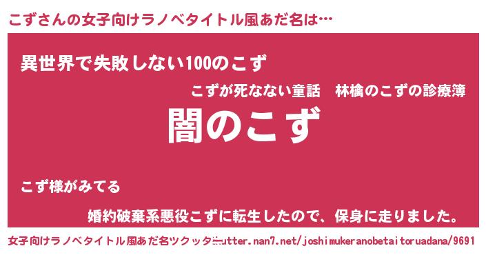 | 男性向けラノベタイトル風あだ名 | 『Re:こずから始める異世界生活』 |