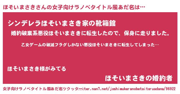 | 意味不明あだ名 | 『住所不定無職ほそいまさき(62歳)』 |